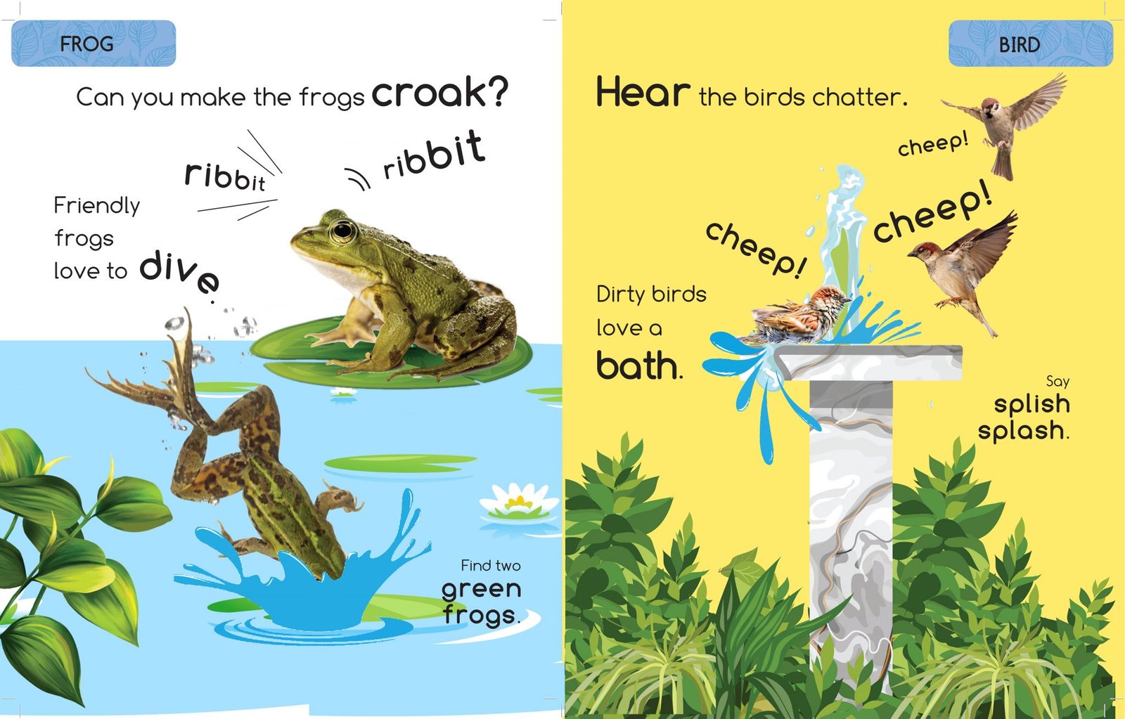 Turn the pages to hear bees buzz, birds cheep, frogs croak and much more.